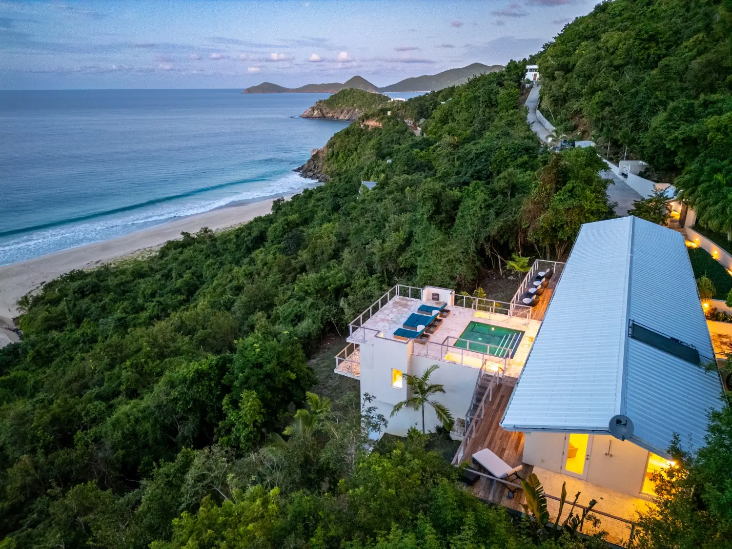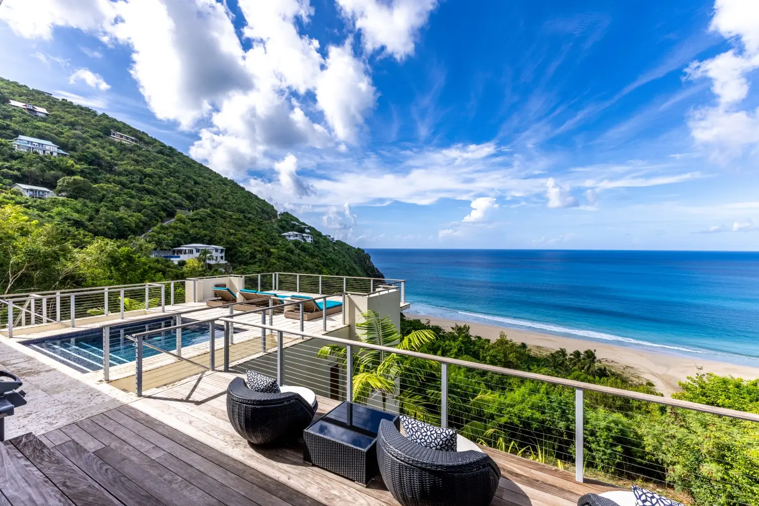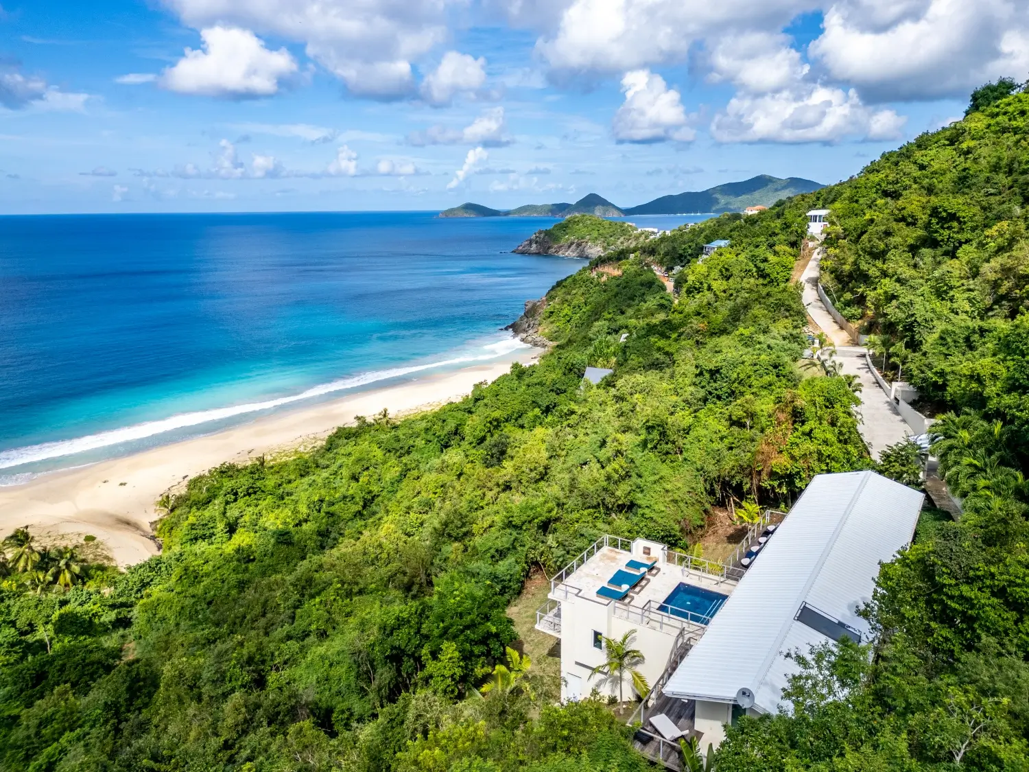 Looking over the expanse of one the softest sandy beaches in Tortola, your view is unmatched. A short walk to the beach makes this a dream vacation home. Lounge on the decks, cool off in the inviting pool and enjoy alfresco dining outdoors under cover with a large table.