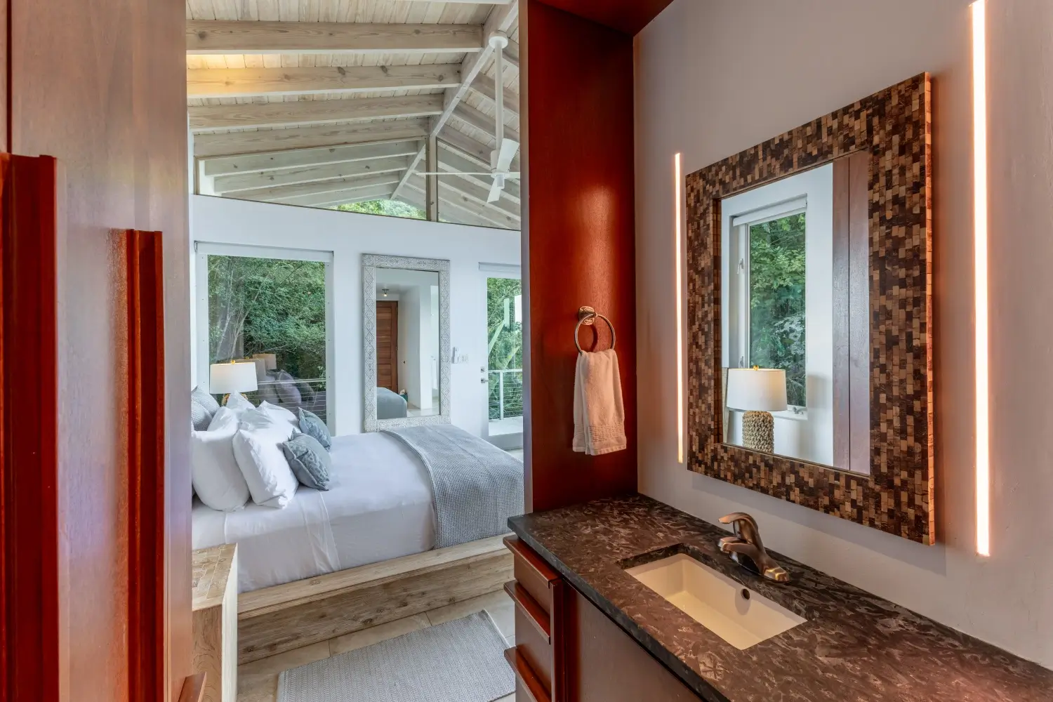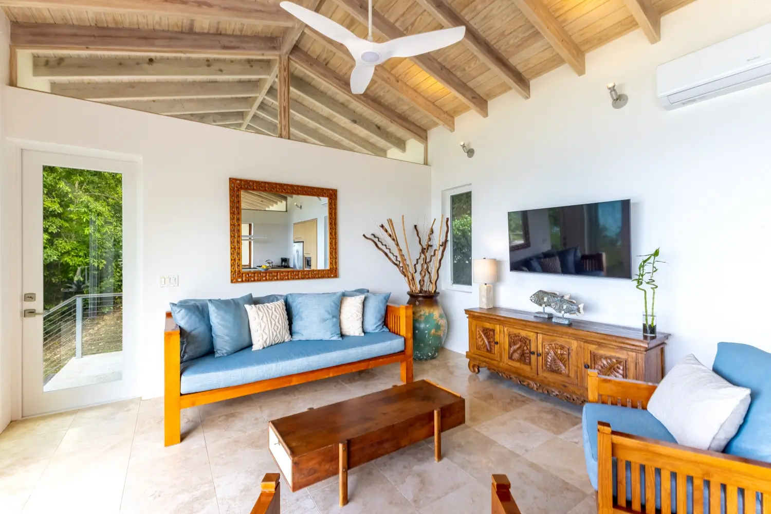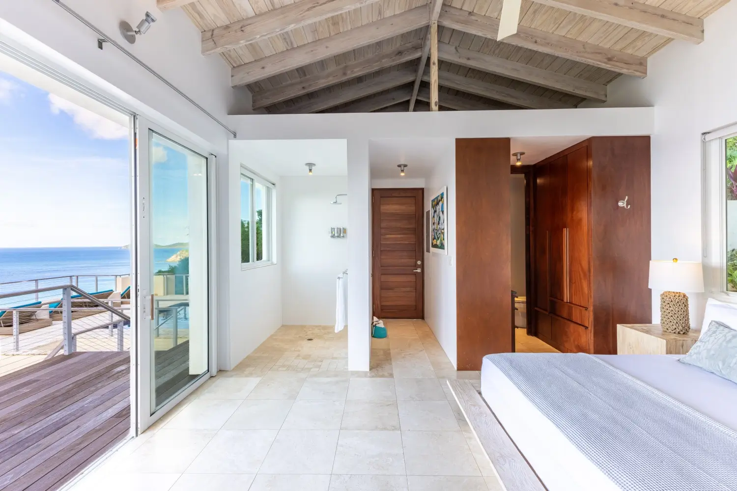 Looking over the expanse of one the softest sandy beaches in Tortola, your view is unmatched. A short walk to the beach makes this a dream vacation home. Lounge on the decks, cool off in the inviting pool and enjoy alfresco dining outdoors under cover with a large table.
